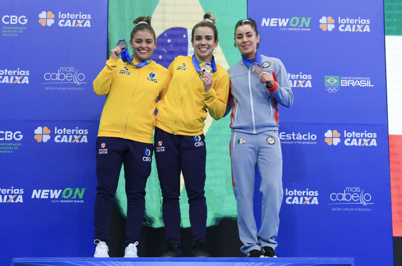 A sequência de três Campeonatos Pan-Americanos realizados pela Confederação Brasileira de Ginástica (CBG) no Rio de Janeiro (RJ) está apenas no início e, nesta terça-feira (28), foi encerrado o primeiro deles. Na Arena Carioca 1, o Brasil brilhou no trampolim. Foram nove medalhas, sendo três de ouro com Alice Hellen e Camilla Gomes no trampolim sincronizado, Camilla novamente no trampolim individual, e Gabriela Cordeiro, campeã no trampolim individual categoria juvenil.