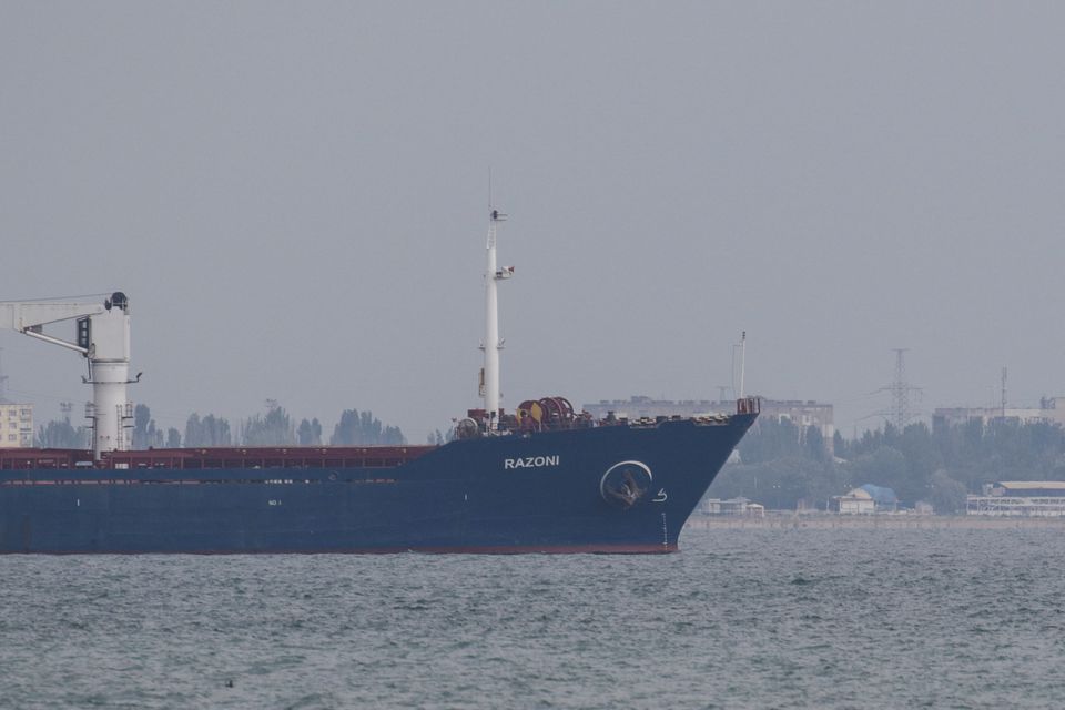 - O navio Razoni, com bandeira de Serra Leoa, deixa o porto marítimo de Odesa após reiniciar a exportação de grãos, em meio ao ataque da Rússia à Ucrânia, Ucrânia, em 1º de agosto de 2022. Serviço de imprensa do Comando das Forças Navais da Ucrânia/Divulgação via REUTERS