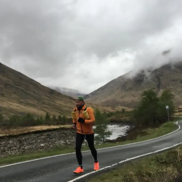 “Eu faço essas corridas sozinho. Eu só corro com uma mochila. E estou correndo de hotel em hotel”, explicou. “Um dos dias eu corri 56 quilômetros [34 milhas]. Eu estava correndo 40 quilômetros [cerca de 25 milhas] em subida e os últimos 16 quilômetros [cerca de 10 milhas] foram em declive. Fiquei sem água duas vezes. Foi bem difícil.”