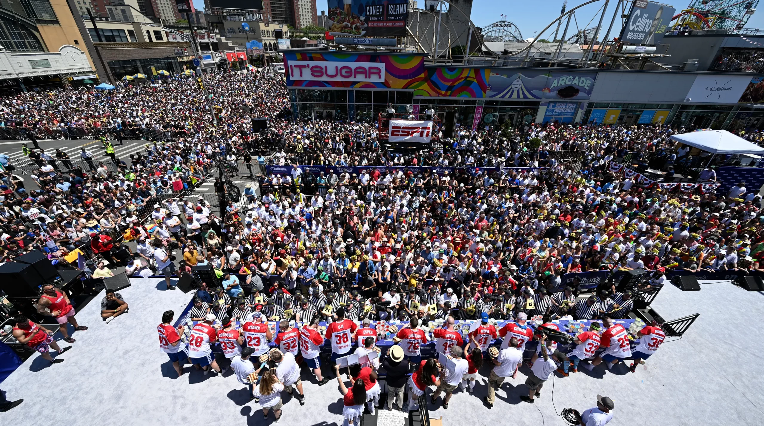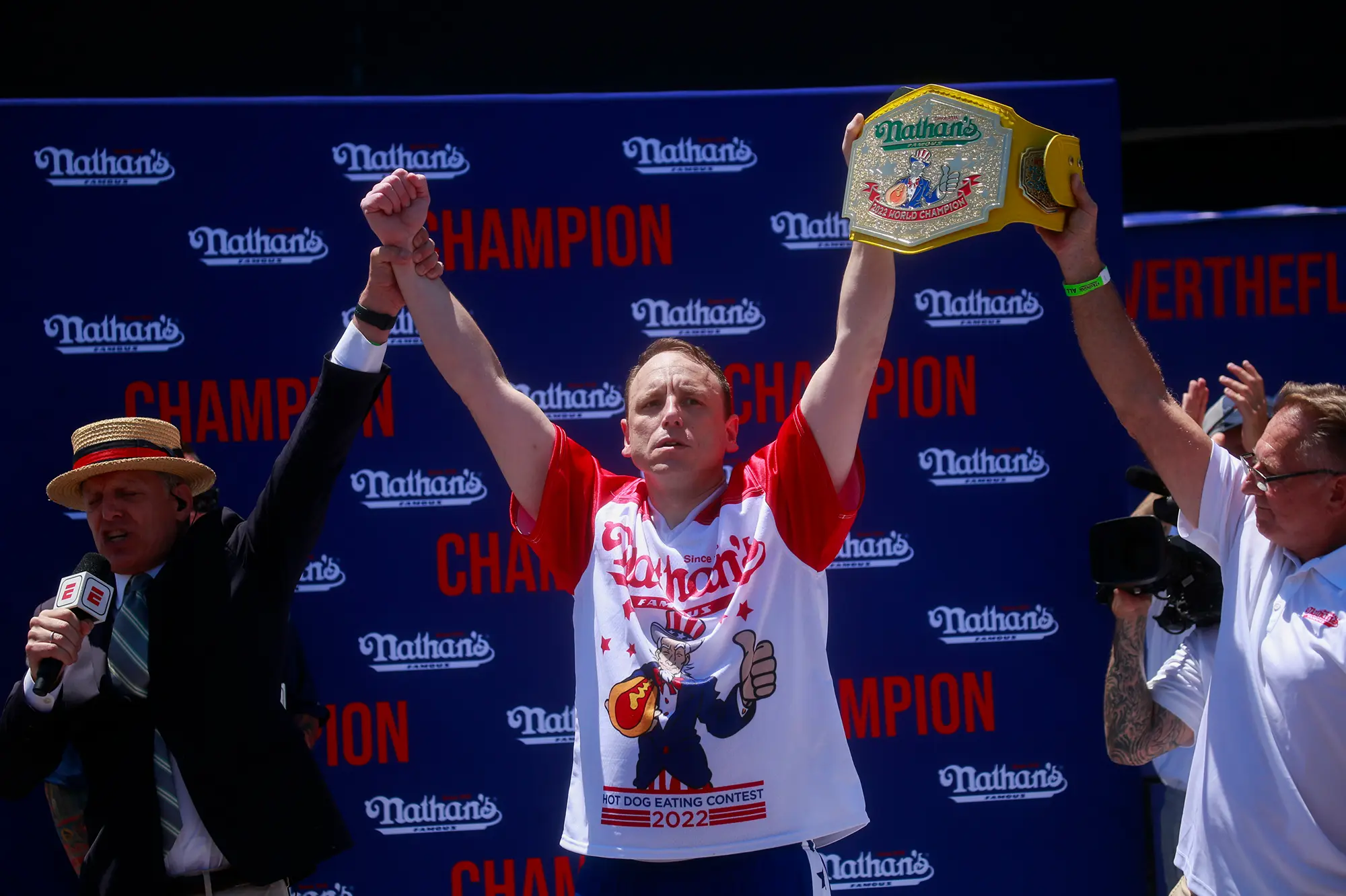 - A vitória de Joey Chestnut marcou a primeira vez desde 2019 que a competição foi realizada em seu local habitual. Paul Martinka