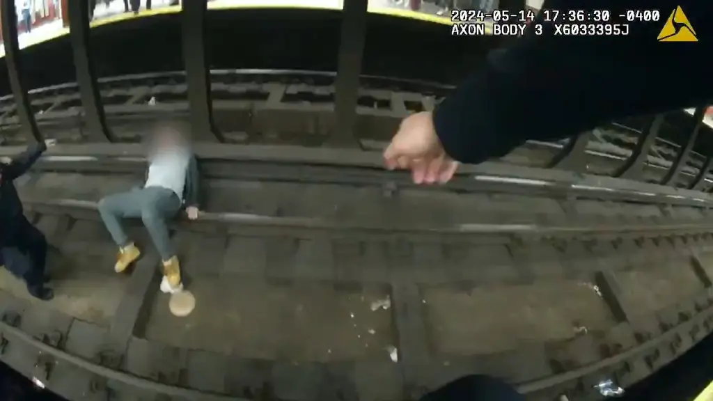 Uma cena dramática, capturada pelas câmeras corporais, mostra o momento emocionante em que dois policiais da NYPD correram por uma estação de metrô no Bronx para resgatar um homem que havia caído nos trilhos durante uma emergência médica.