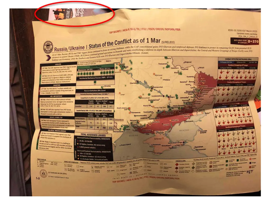 As fotos dos documentos classificados analisados pelo The Post indicavam que eram cópias de slides de briefing que foram fotografados em uma escrivaninha ou mesa antes de serem compartilhados online. Em pelo menos duas fotografias, um folheto com informações aparentes sobre uma mira de fuzil pode ser visto ao fundo. (Fonte: Ny Post)