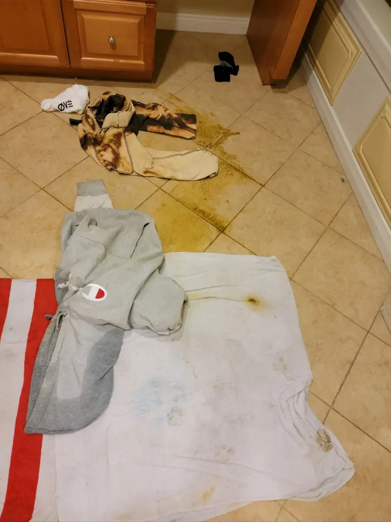 - Outras imagens chocantes apareceram mostrando fezes no chão. Jane Schneck/Facebook